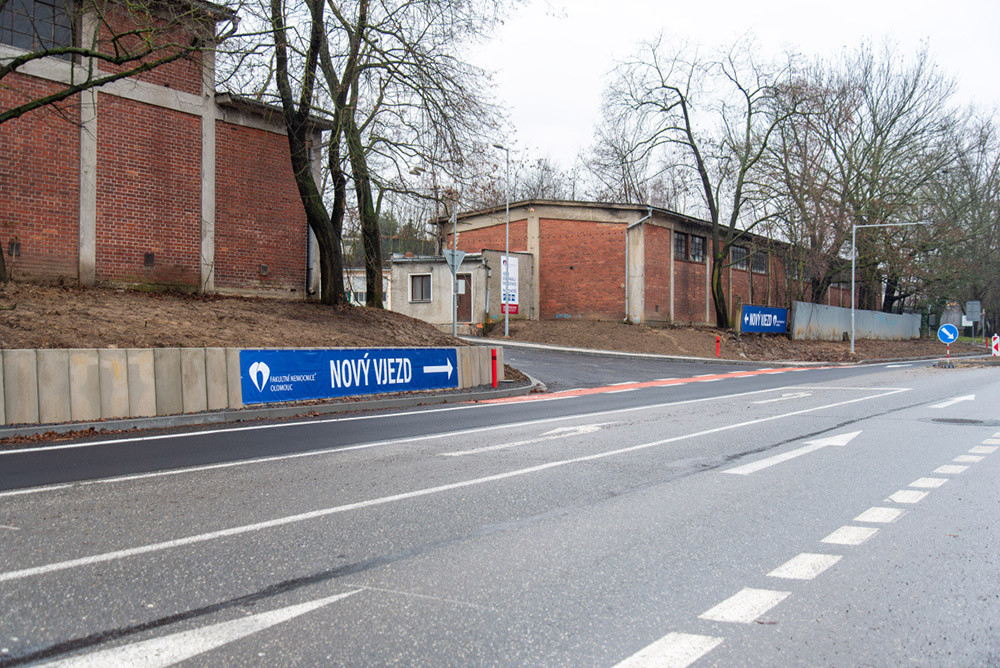 Nevyužívaný vjezd do Fakultní nemocnice Olomouc v ulici Hněvotínská