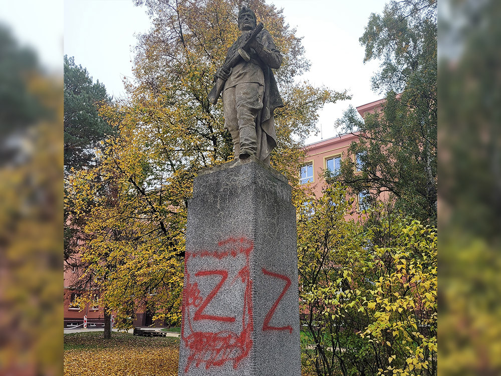 Na sochu Rudoarmějce v Přerově nasprejoval vandal písmena Z. Barbarský čin, řekl primátor