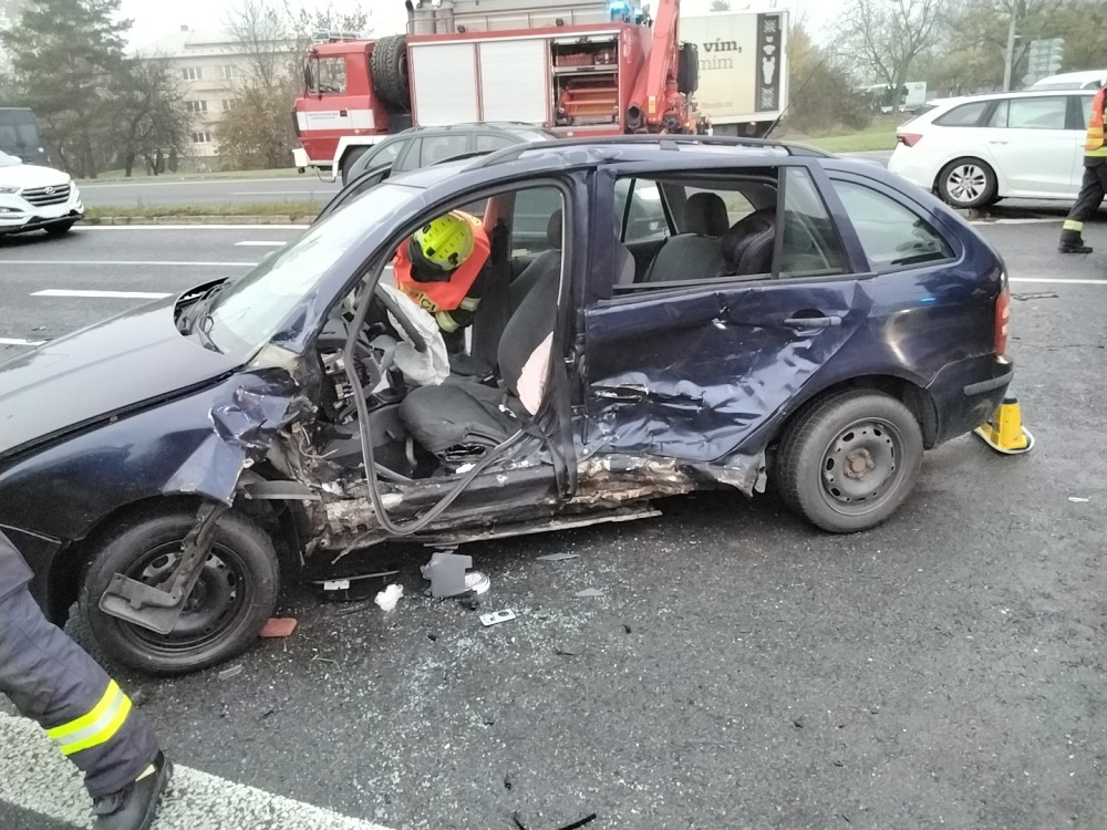 V Olomouci komplikovaly provoz dvě nehody. Hasiči museli vyprostit zaklíněného řidiče