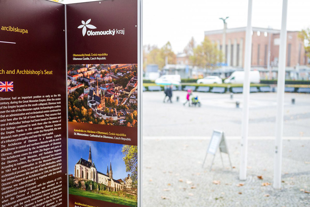 Před sídlem krajského úřadu v Olomouci je připravena prezentace Cyrilometodějské stezky