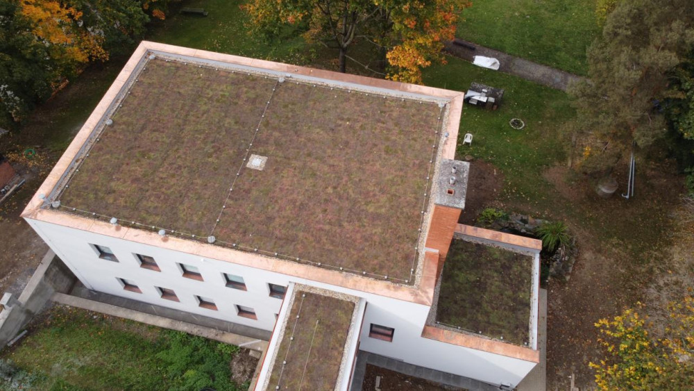 Šternberský dům dětí a mládeže má zelenou střechu. Rozchodník zachytí dešťovou vodu a slouží jako izolace