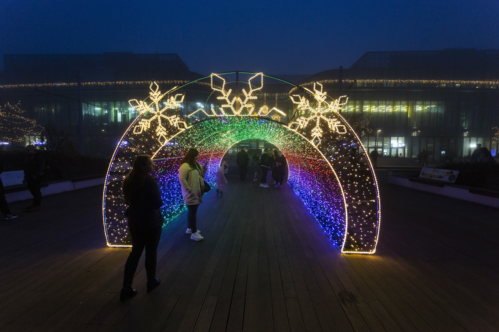 Světelný tunel před obchodní galerií Šantovka v Olomouci