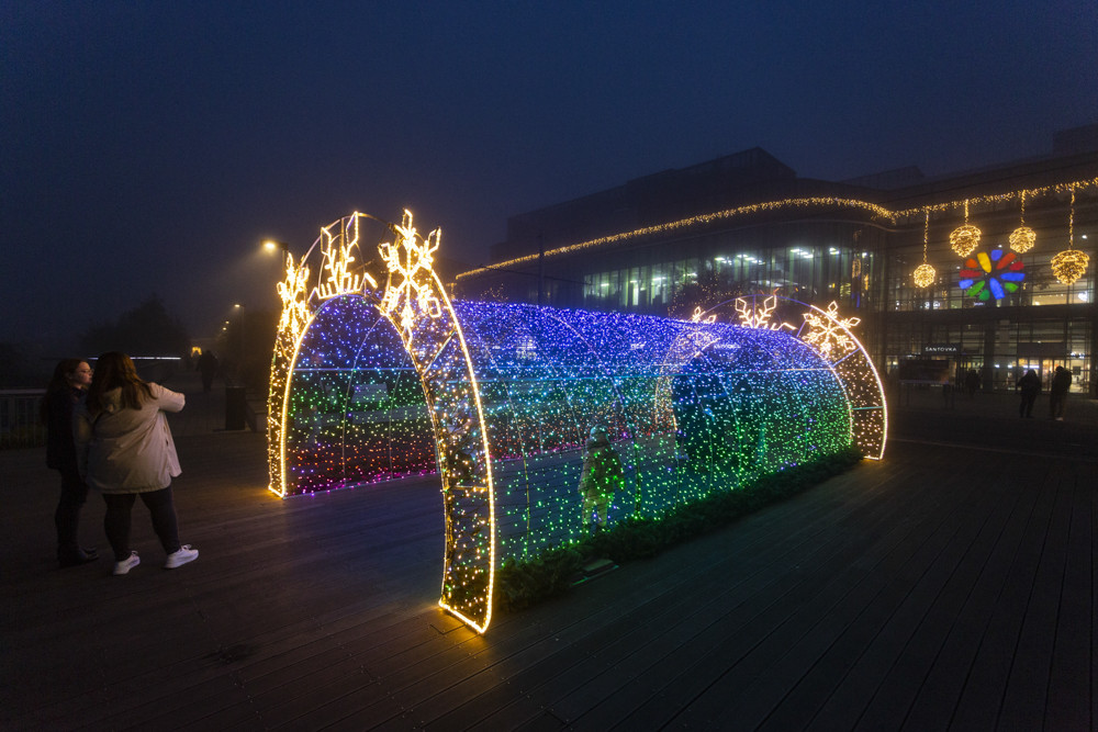 Světelný tunel před obchodní galerií Šantovka v Olomouci