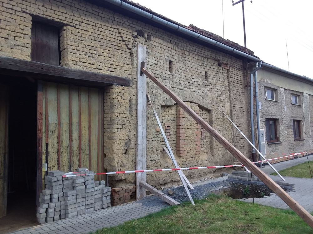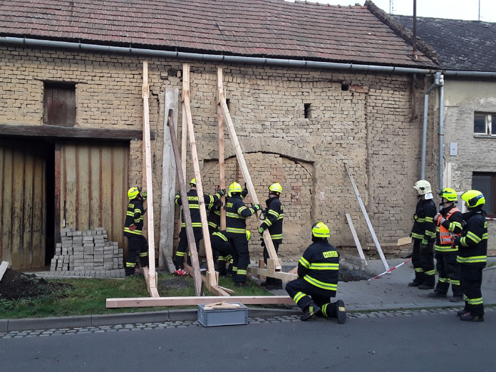 V Hablově hrozilo zřícení domu. Zeď z vepřovic museli zajistit tři jednotky hasičů