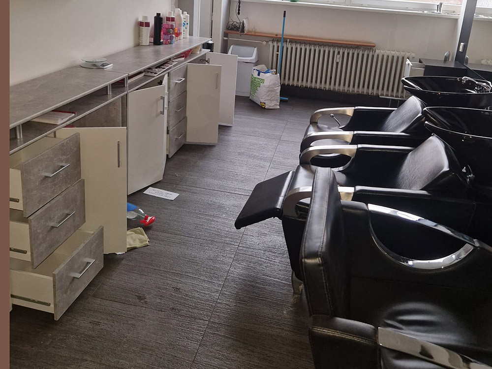 Záběr z vykradeného kadeřnictví