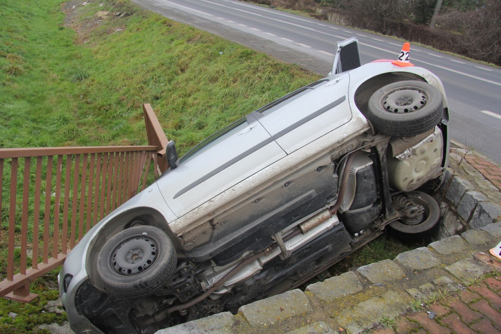 U Bludova žena porazila zábradlí a s autem skončila v hlubokém příkopu. Vyprošťovali ji svědci