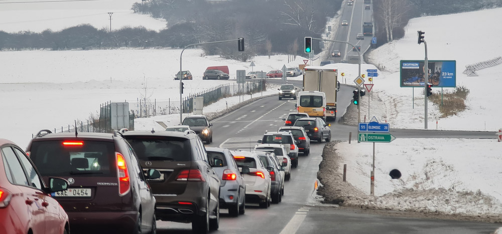 Výjezd z Přerova brzdí semafor u dálničního sjezdu. Úleva přijde po dokončení D1