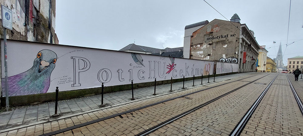 SEFO se odkládá kvůli holubovi, píše se na ohradě u muzea. Fikce má vyvolat otázky i upozornit na výstavu