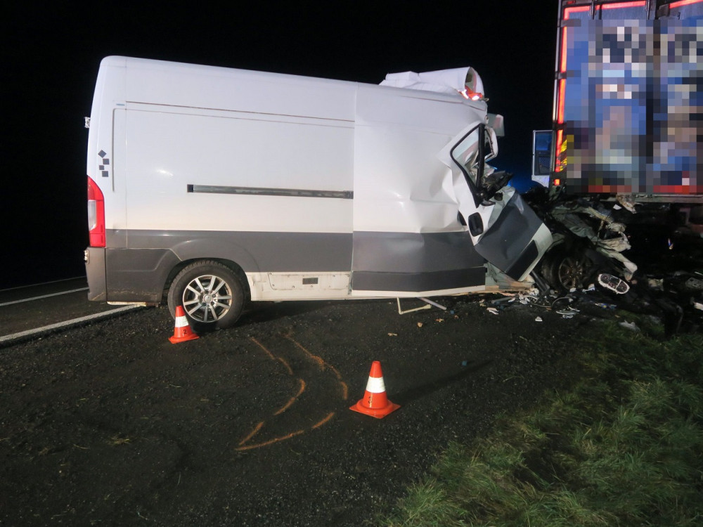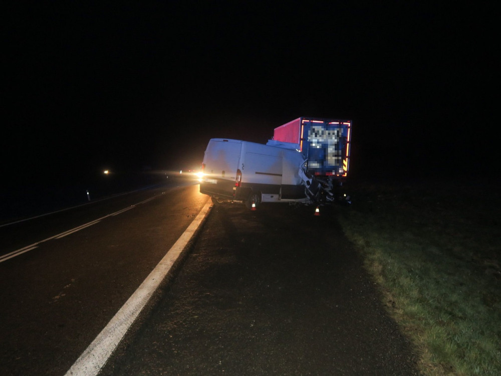 Šedesátiletý řidič dodávky u Černotína nezvládl zatáčku a narazil do kamionu. Nehodu nepřežil