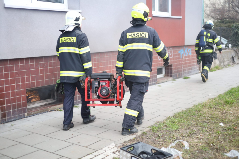 V Olomouci hořel sklepní byt. V hustém černém dýmu hasiči hledali dva nájemníky