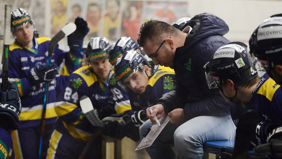 Trenér Lukáš Majer na střídačce Šumperka - ilustrační foto