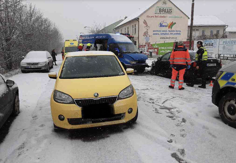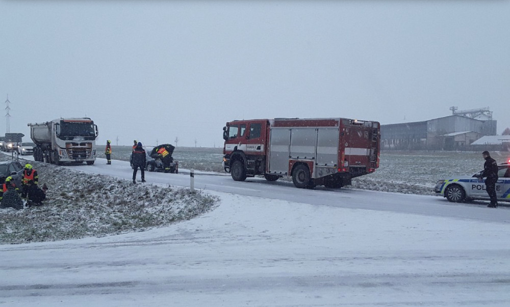 Husté sněžení komplikuje dopravu. Nehoda zavřela silnici u Olomouce