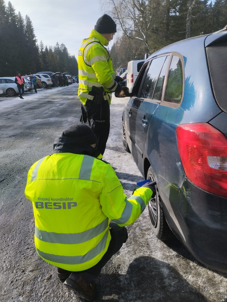 Na Skřítku dnes policisté kontrolovali zimní výbavu. Co v ní nesmí chybět?