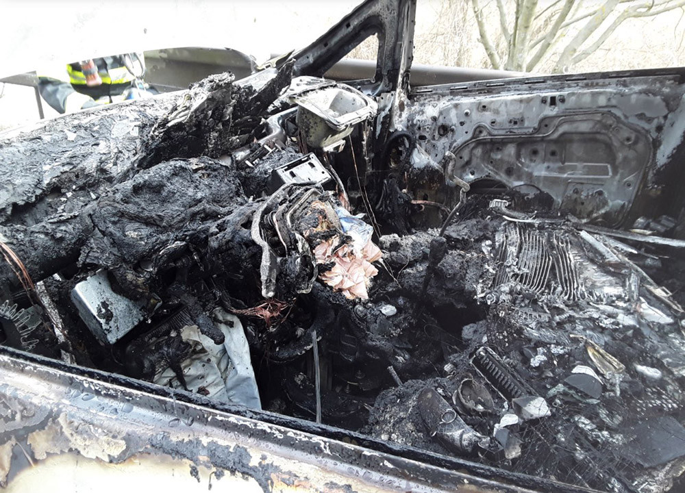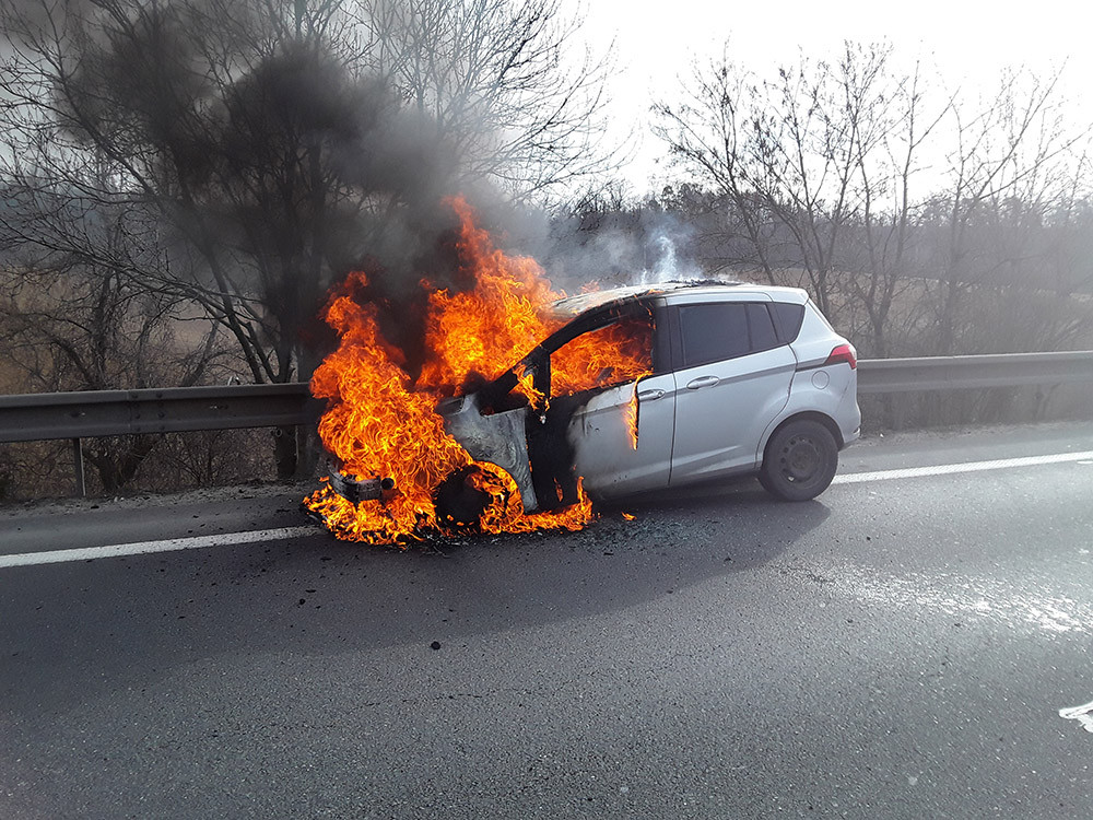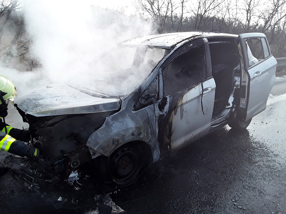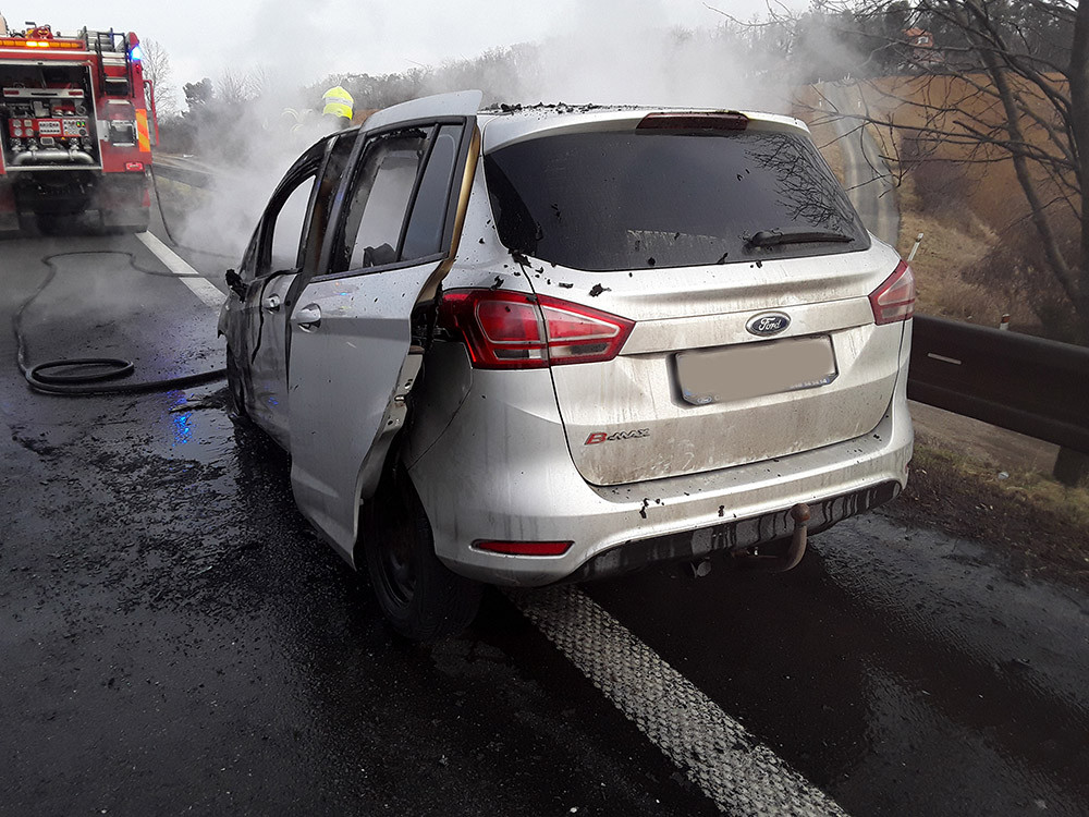 Provoz na D46 u Prostějova zkomplikoval požár auta