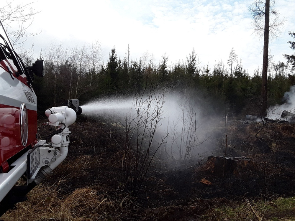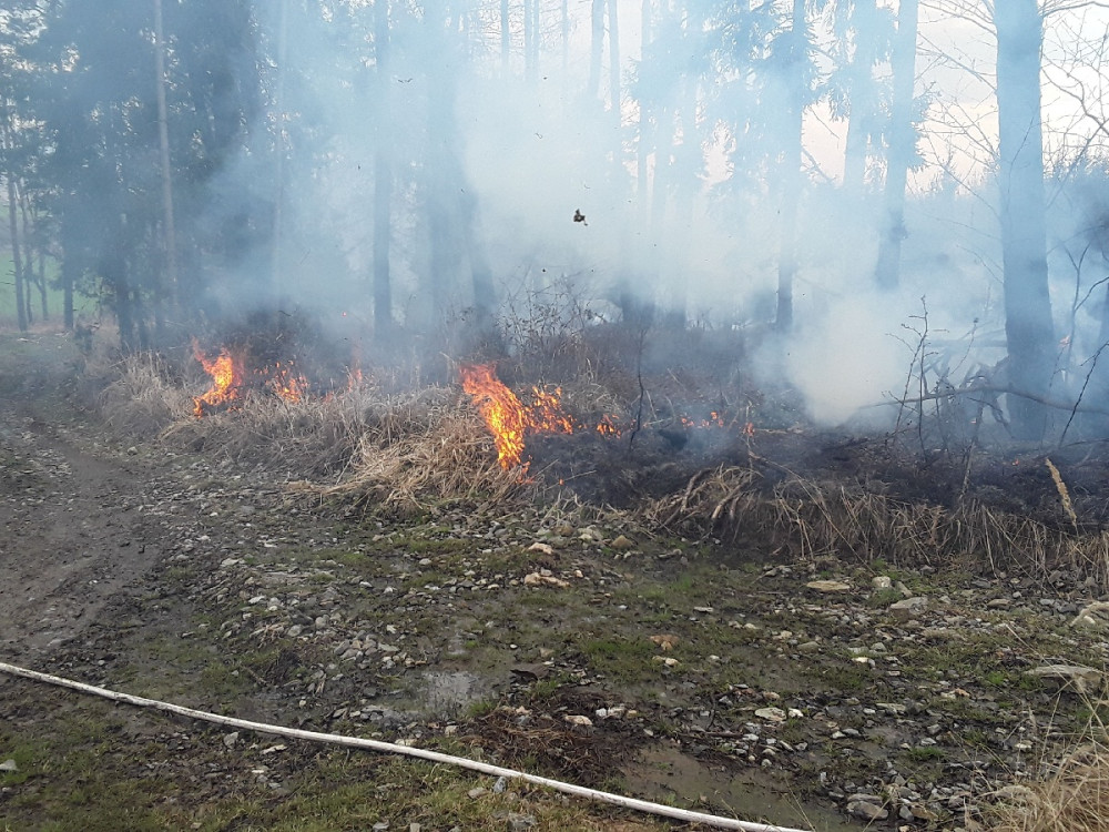 První letošní požár lesa. U Nové Hradečné hořel travní porost a malé jehličnaté stromky