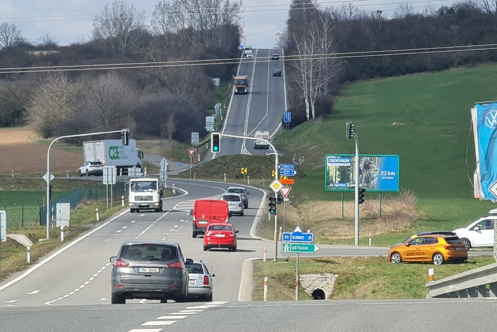 Na světelné křižovatce silnice I/55 na okraji Přerova se v posledních týdnech tvoří kolony