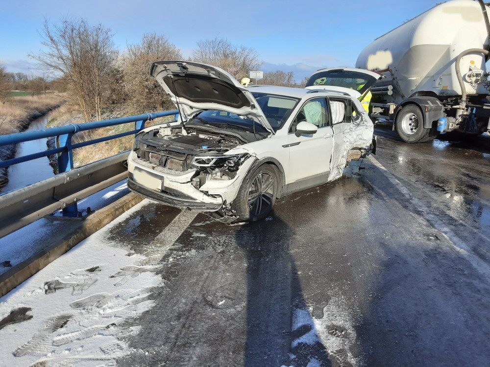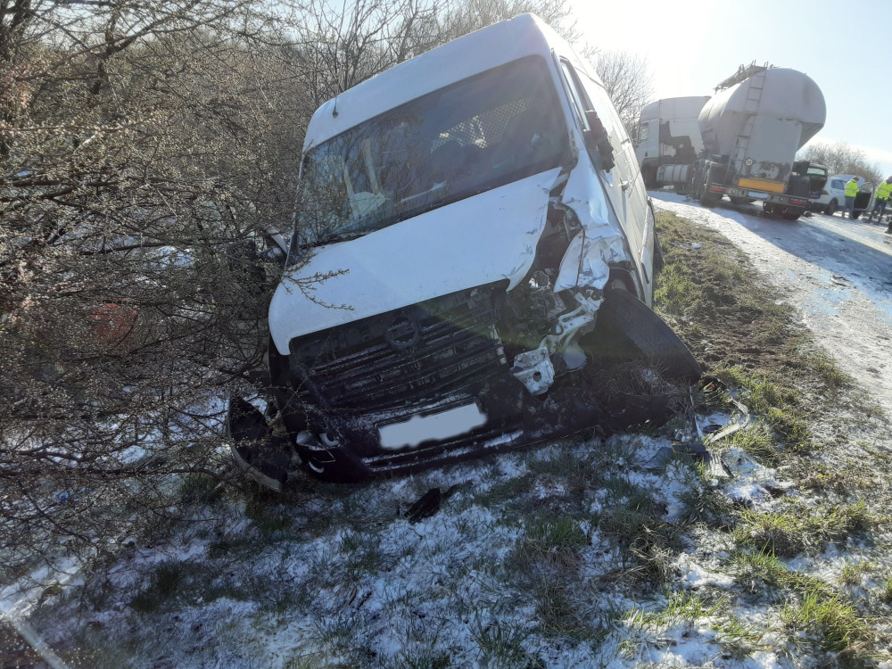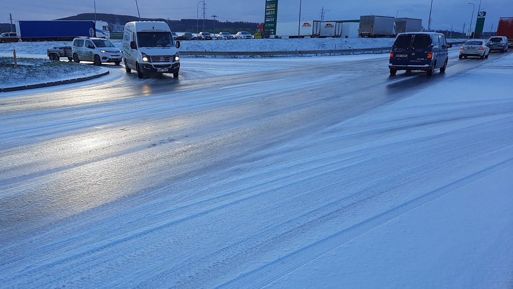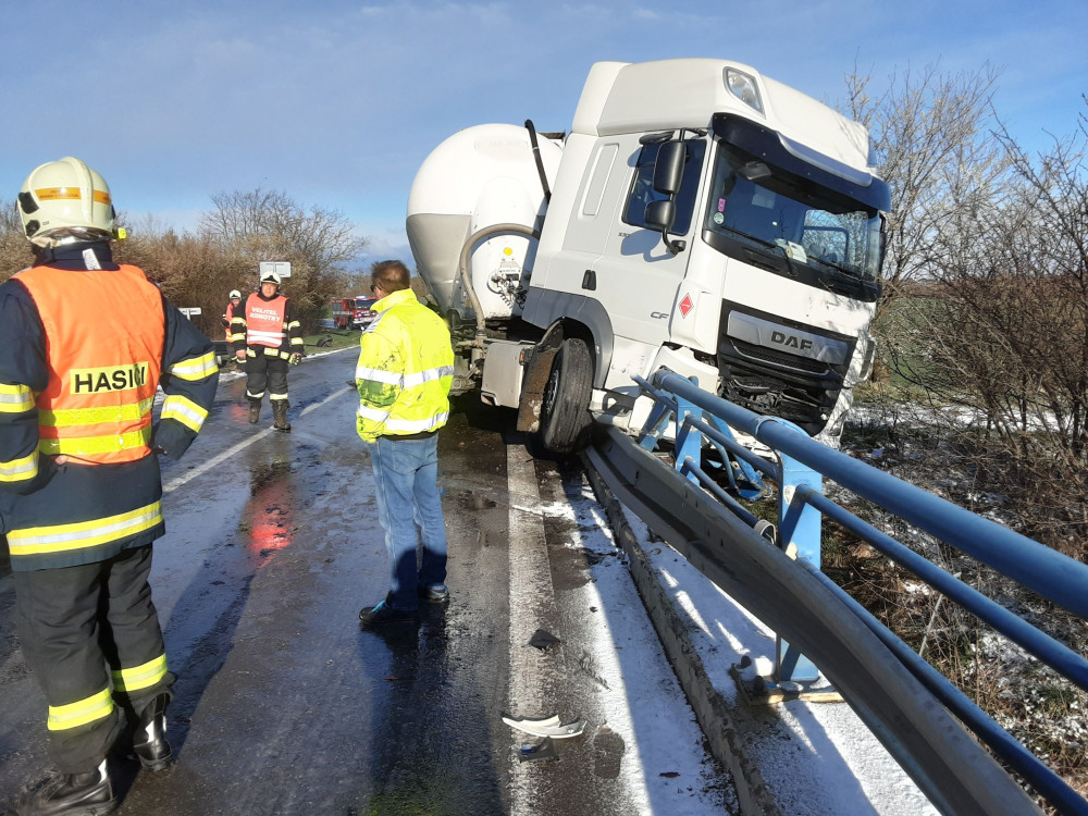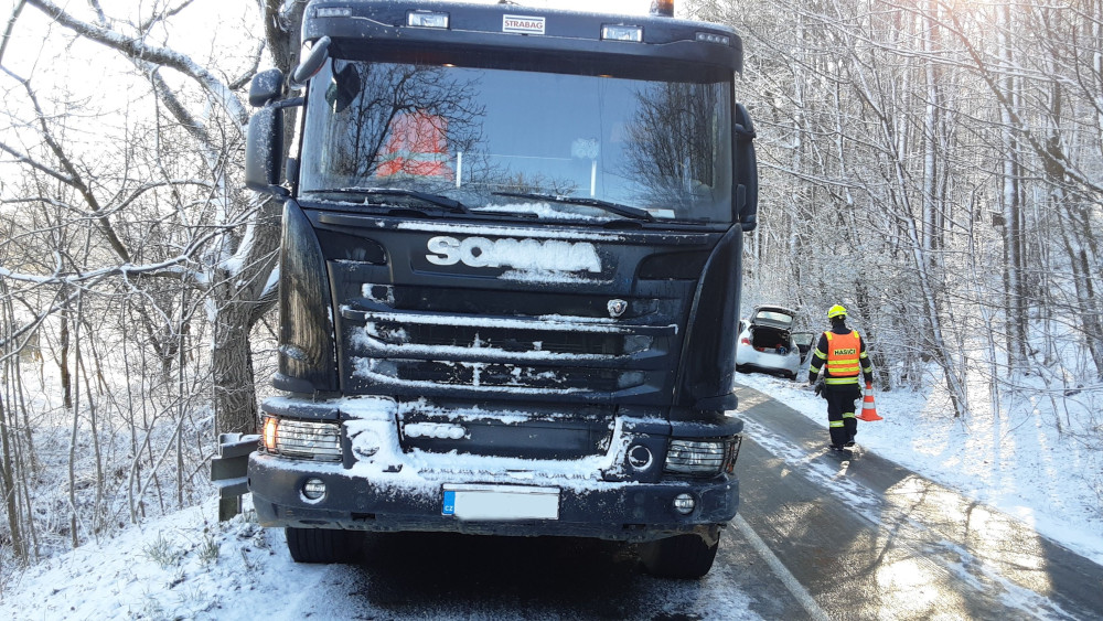 Cesty jako sklo a hodinová zpoždění MHD. Kamion zůstal viset na svodidlech, dozvuk zimy v Olomouckém kraji trápí řidiče