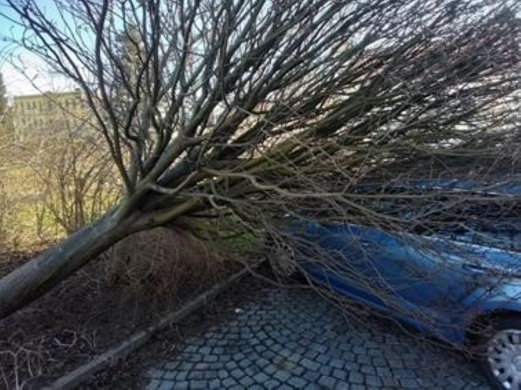 V centru Prostějova spadl strom na zaparkovaný automobil. Ukázalo se, že neměl téměř žádné kořeny