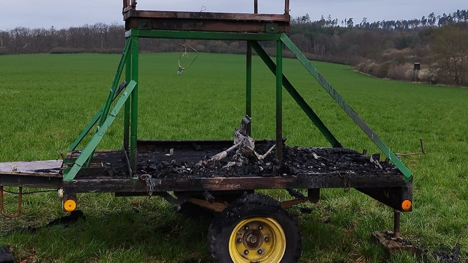 Na apríla někdo myslivcům zapálil na Prostějovsku posed. Škoda je pětadvacet tisíc korun