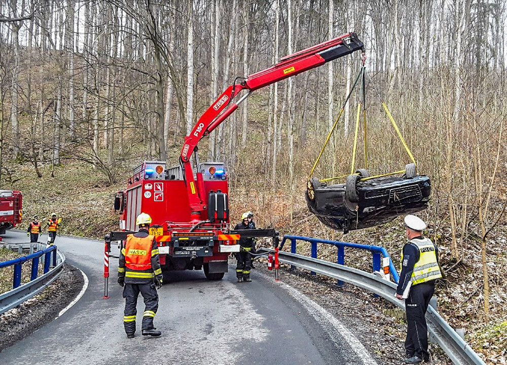 Hasiči na Šternbersku zasahovali u převráceného Audi, řidič utrpěl zranění