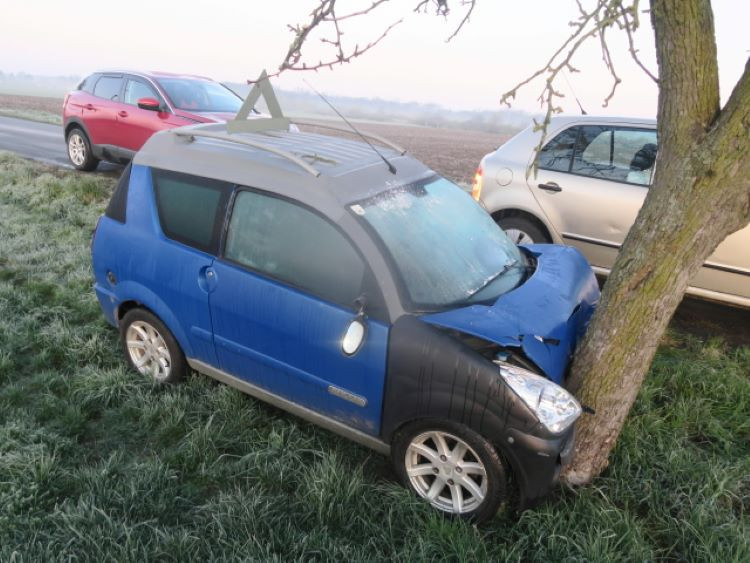 Šestnáctiletá řidička narazila pobíž Brodku u Přerova s malým vozidlem do stromu. Škoda je 50 tisíc
