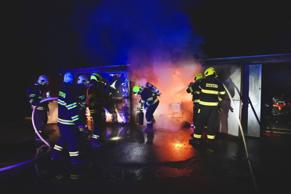 VIDEO: Ve Velké Bystřici hořela loď v garáži. Zásah komplikoval nebezpečný hořlavý materiál a tlakové lahve
