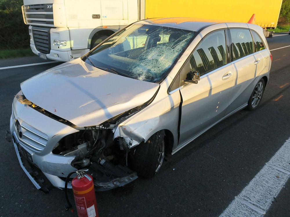 Fantom ze zahraničního Mercedesu: po bouračce do svodidel nechal auto stát na D46 a zmizel