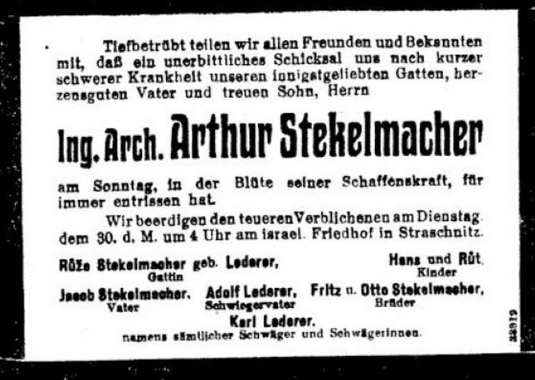Před devadesáti lety zemřel prostějovský rodák židovského původu architekt Artur Stecklmacher