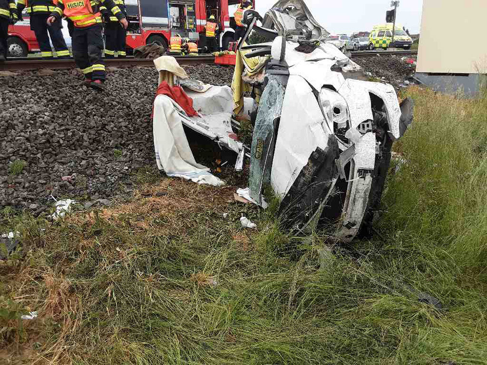 Vlak zdemoloval auto při nehodě u Postřelmova: dva zraněné vyprošťovali hasiči