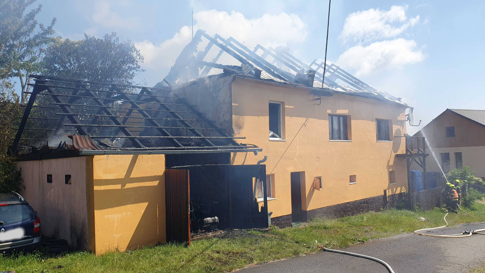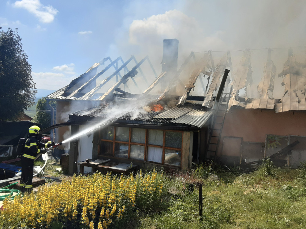 V Bezuchově sedm jednotek hasičů likvidovalo rozsáhlý požár střechy rodinného domu. Škoda bude kolem dvou milionů