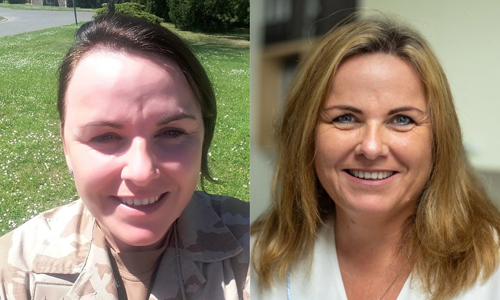 Lenka Járová na snímku z roku 2017 po návratu z mise v Afganistánu, vpravo jako vrchní sestra Oddělení rehabilitace FN Olomouc.