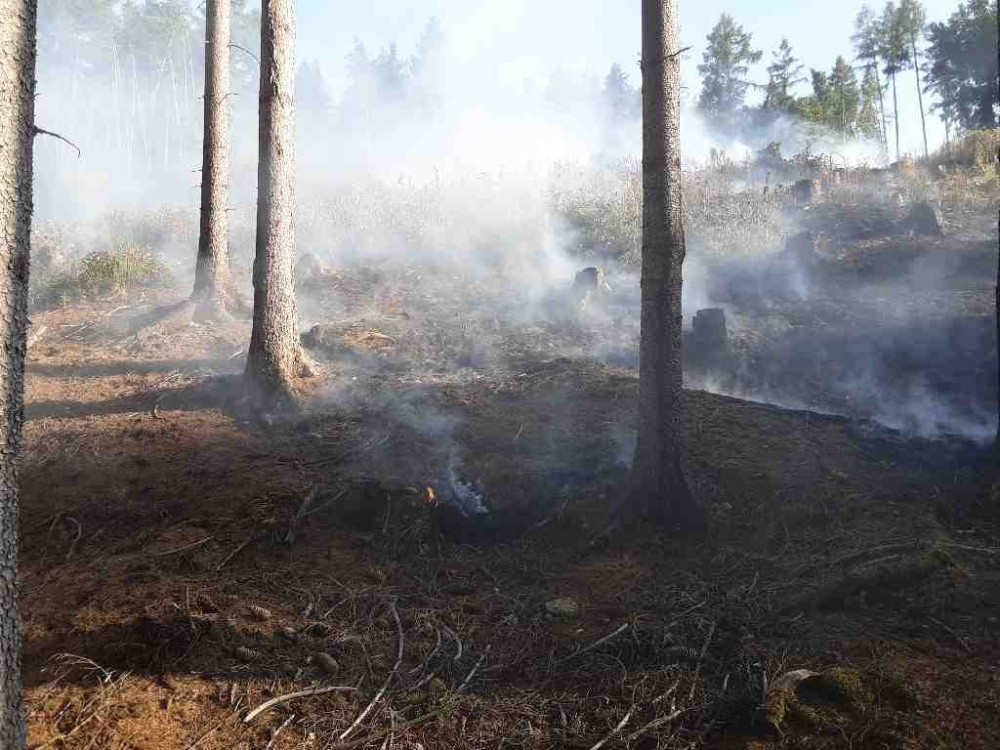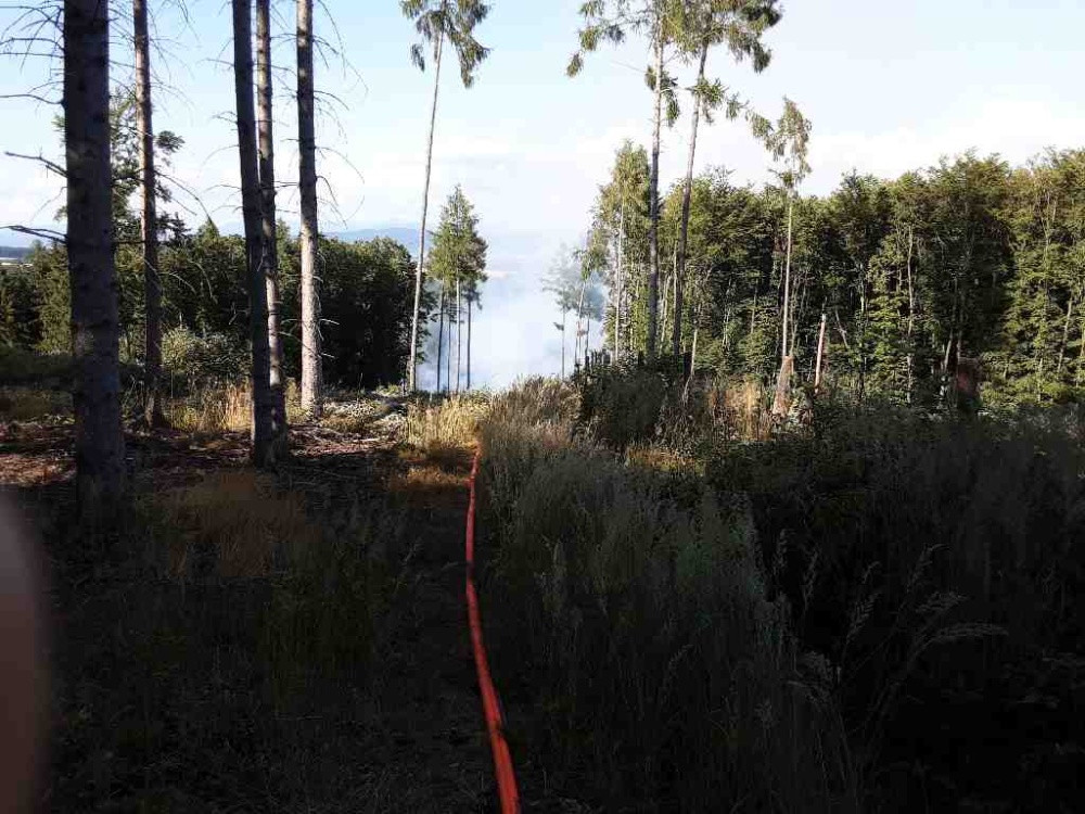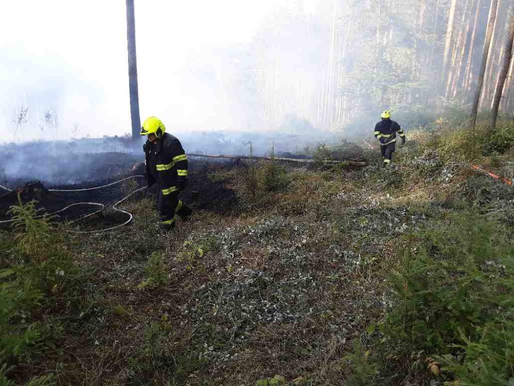 U Mírova hasiči likvidují lesní požár. V akci je i vrtulník s bambivakem