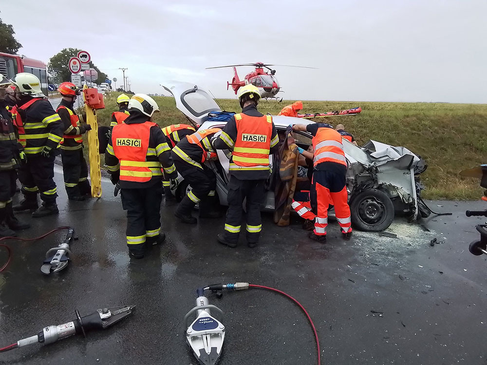 Střet náklaďáku s osobním autem zablokoval křižovatku v Dubu. Čtyři lidé utrpěli zranění