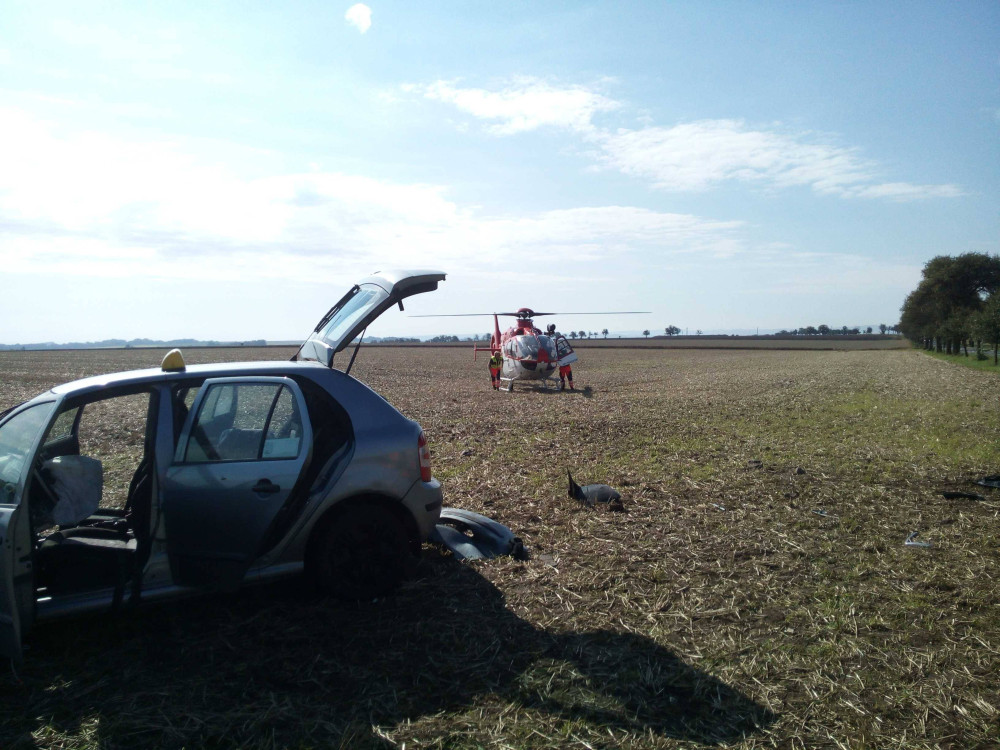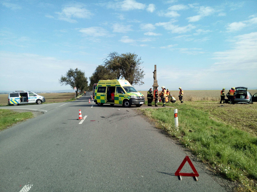 U Němčic nad Hanou se srazila dvě auta. Jsou čtyři zranění, z toho tři děti. Na místo letěl vrtulník