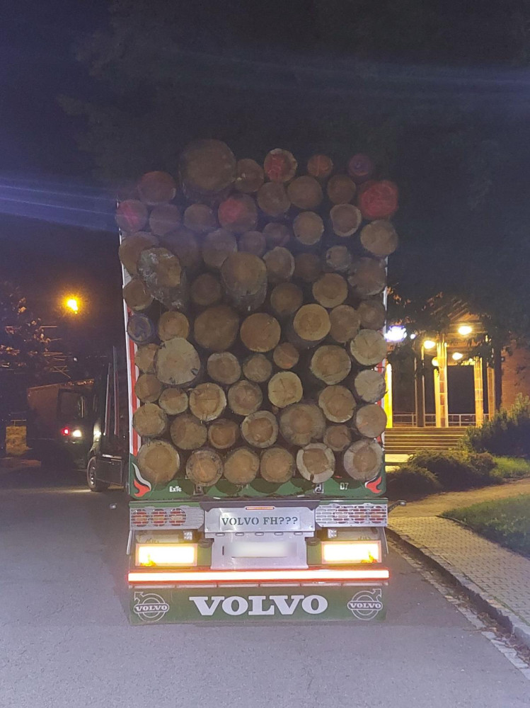 Kamion byl přetížený dřevem, hrozil pád jednoho z kmenů na dálnici. Řidič dostal pokutu 100 tisíc korun