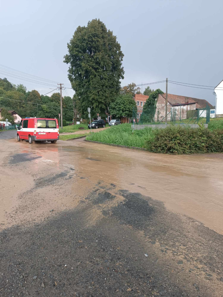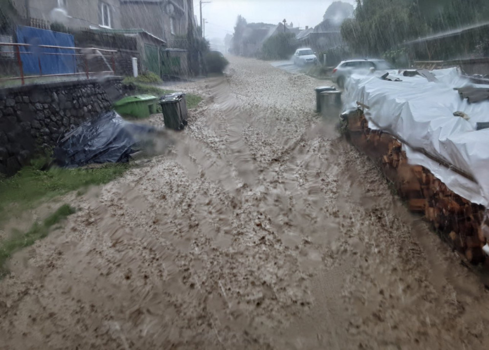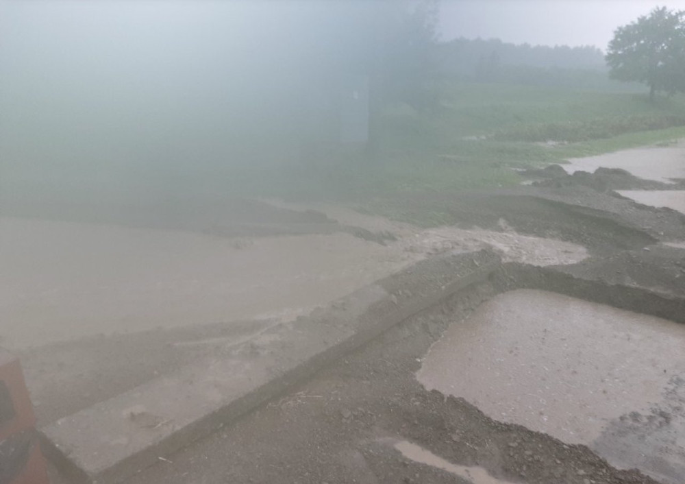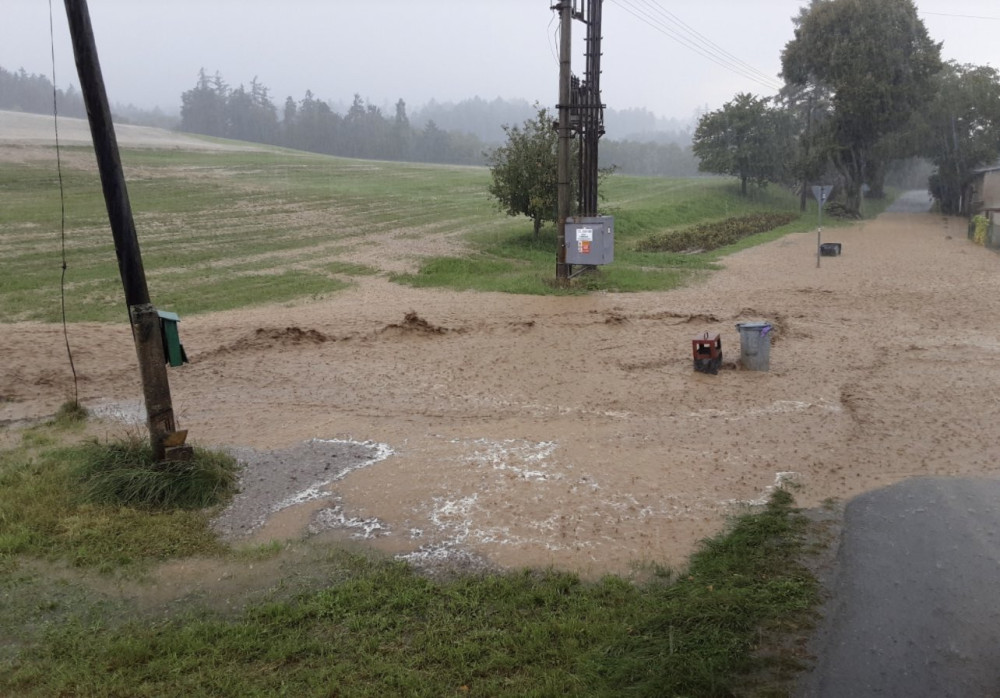 FOTO, VIDEO: Na Konicku silná bouřka vyplavila několik obcí. U Dzbelu je uzavřena silnice, poškodila ji voda