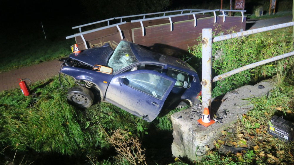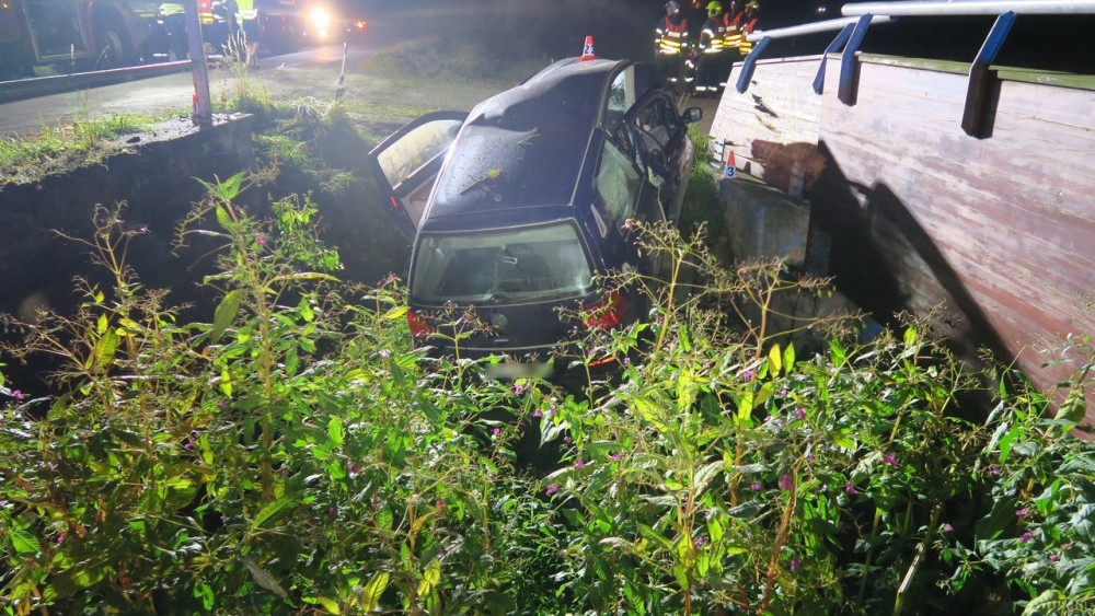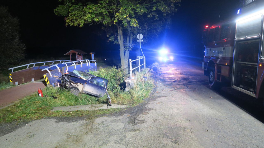 U Mohelnice opilý mladík nezvládl jízdu, zničil zábradlí na mostě a skončil v příkopu. Vůz je na odpis