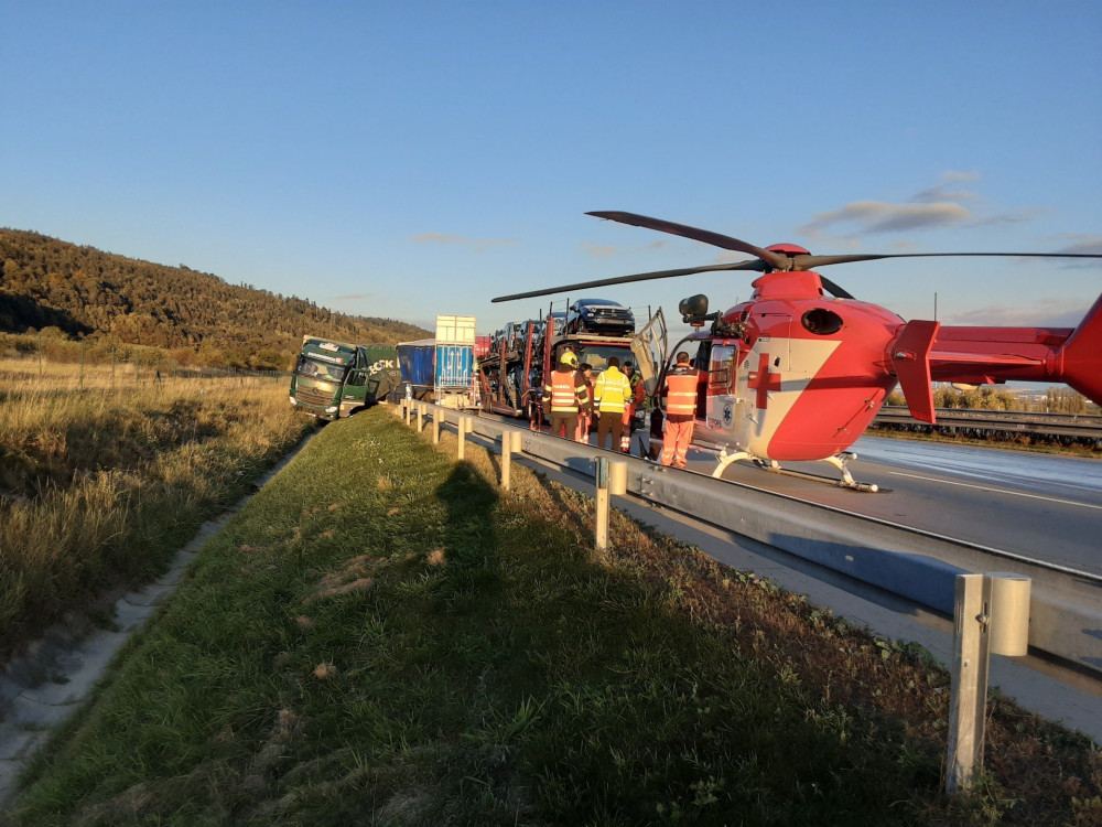 Na dálnici D1 u Milenova na Přerovsku se srazily čtyři kamiony, na stejném místě jako ráno. Dálnice byla uzavřená