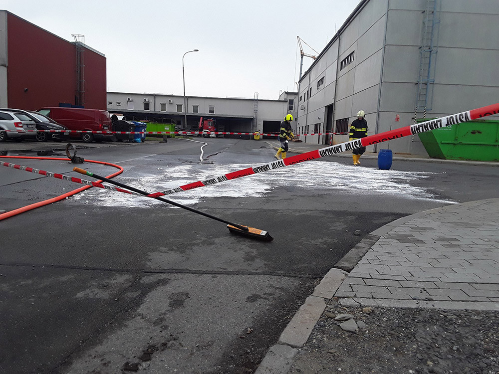 V Olomouci vyteklo 150 litrů koncentrované kyseliny do kanalizace, hasiči zasahují i u nedaleké řeky