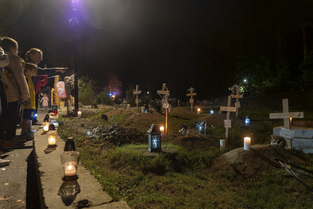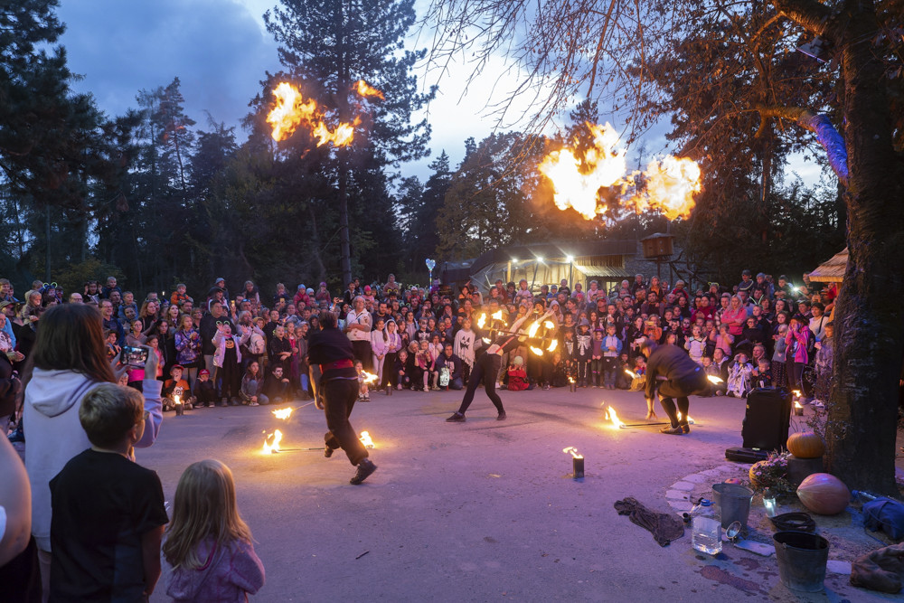 FOTOGALERIE: Strašidelné dekorace i ohňová show. Večer duchů na Svatý Kopeček přilákal davy