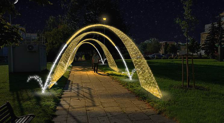 Vizualizace světelné výzdoby na kruhovém objezdu nedaleko centra Přerova