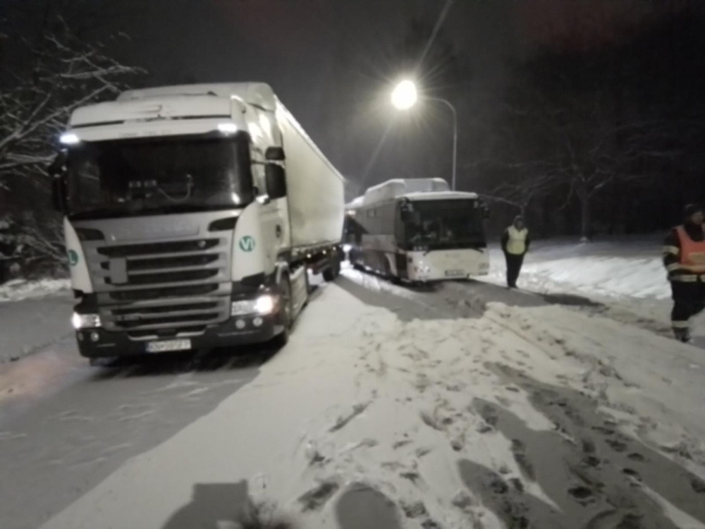 Sníh trápí řidiče na severu Olomouckého kraje. Na Jesenicku se střetl kamion s autobusem