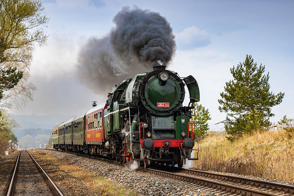 Vlaková souprava s parní lokomotivou Rosnička