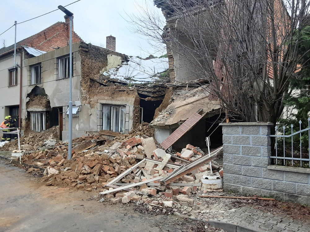 Na Prostějovsku se zřítilo zchátralé stavení, ruina ohrožuje okolní domy