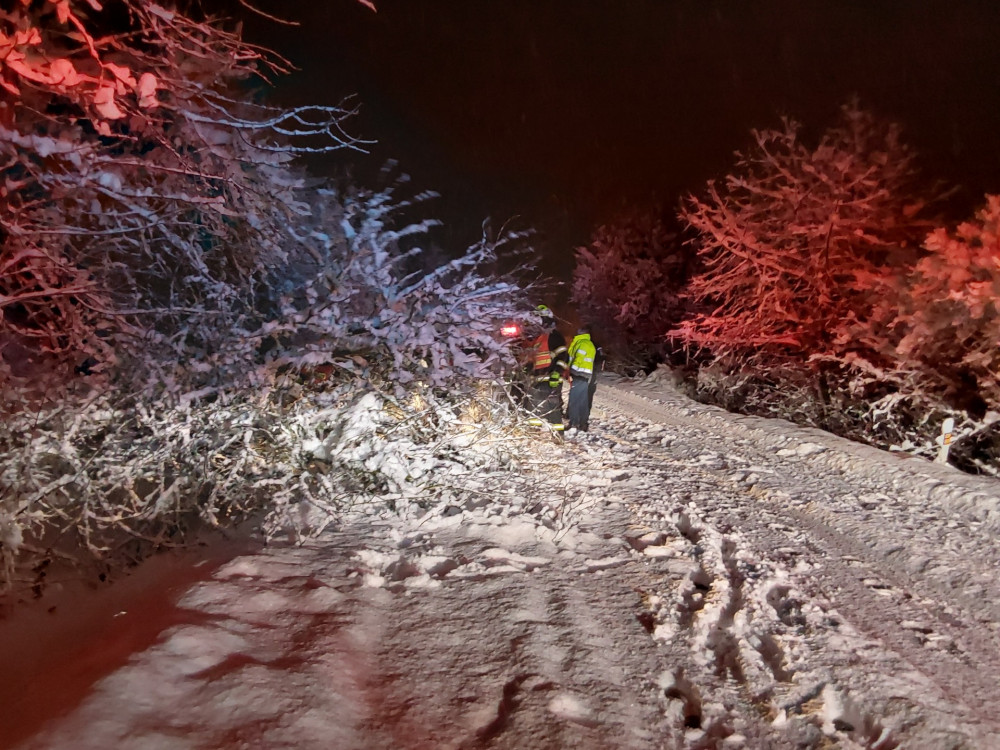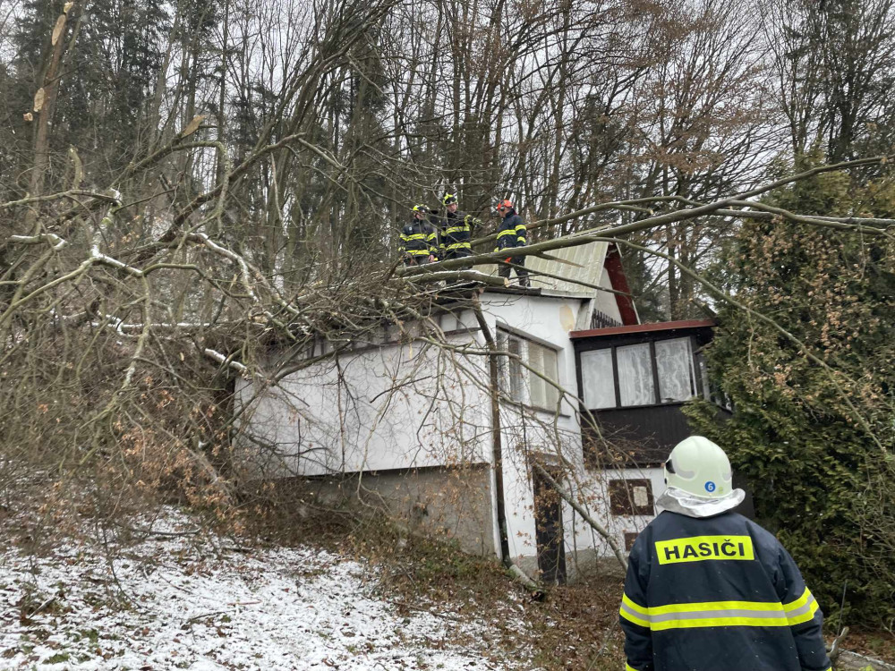 Hasiči se nezastavili, evidují přes 120 výjezdů. Těžký sníh lámal stromy, u Hluboček měl nehodu osobní vlak