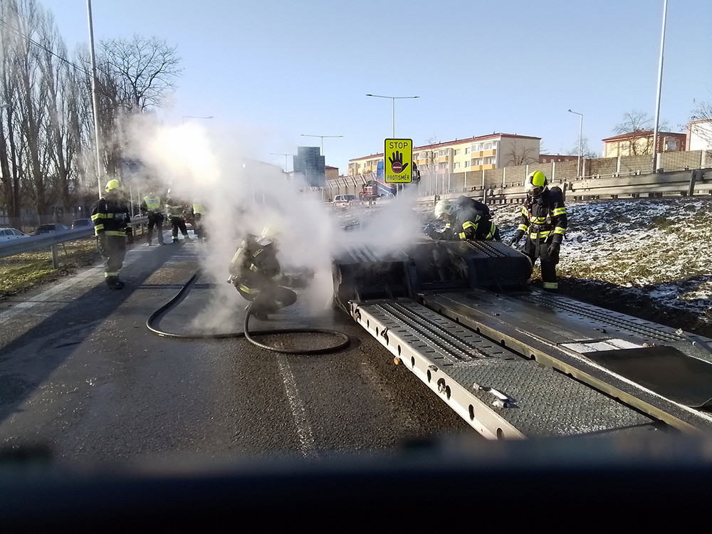 Požár náklaďáku zablokoval dálniční exit v Prostějově. Škoda překročí milion