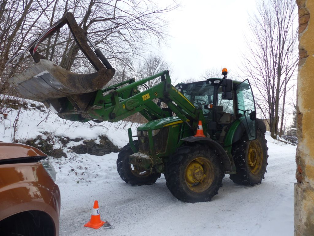 Traktor ve Zlatých Horách rozpáral vidlemi osobní auto. Jeho řidič naštěstí vyvázl bez zranění