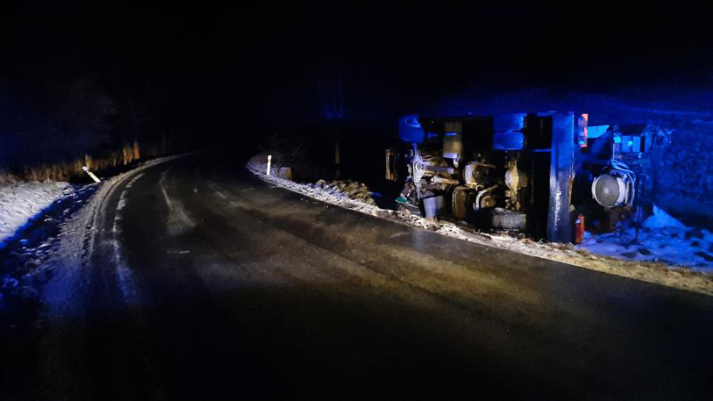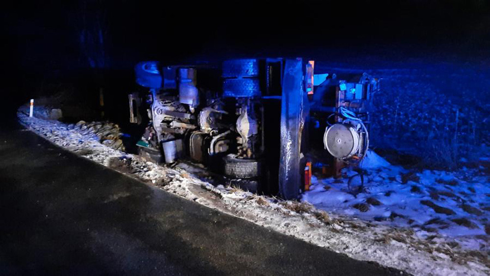 Havarovaný autobus v Ludmírově, ve voze byl pouze řidič, vyvázl bez zranění