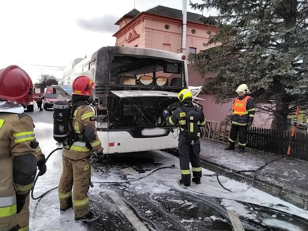 Ve Zlatých Horách shořela část autobusu. Hasičům pomáhali i kolegové z Polska