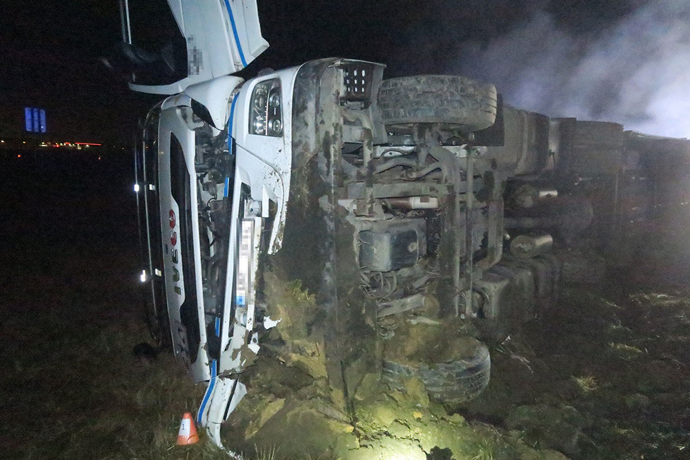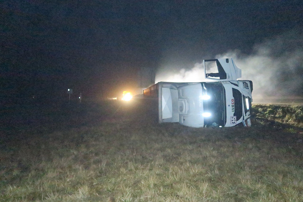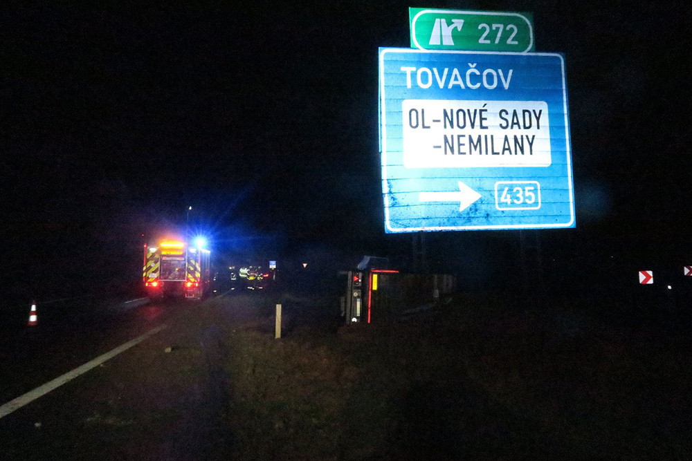 Na dálnici u Olomouce havaroval kamion naložený tisícovkami kuřat. Řidič usnul